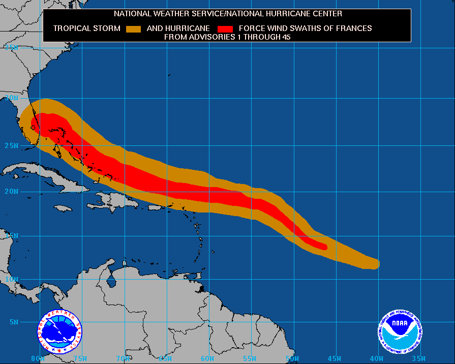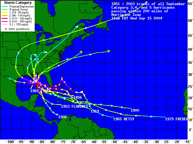 Compare path of hurricane Frances, of bands with heavy floods in Europa, China... with bands of total solar eclipses.