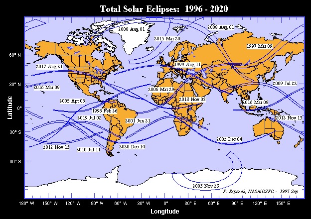 Look on map of the world and compare places of nountains ridges, places of seismic activities with bands of eclipses.